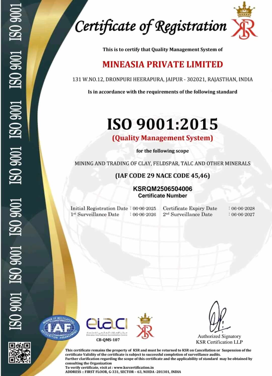 We take pride in being recognized by leading industry authorities for our unwavering commitment to quality and reliability. Our certifications are a testament to our dedication to delivering premium-grade minerals, maintaining environmental responsibility, and ensuring complete customer satisfaction.
